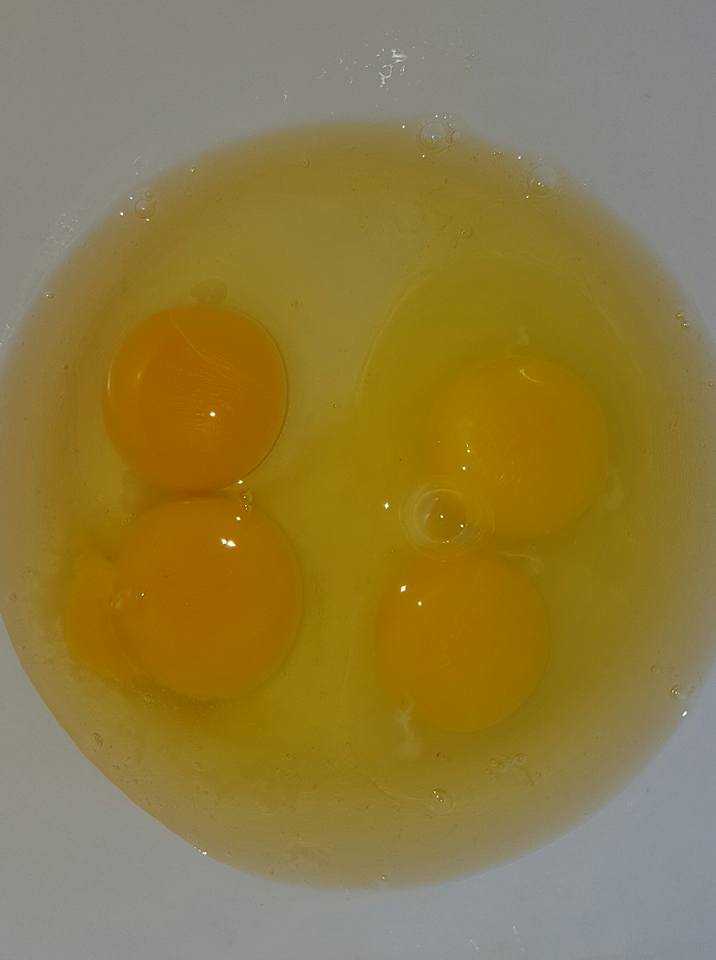 This is a picture of a well know brand of Organic Free Range eggs (shown on the right) found in the supermarket compared to the pasture raised eggs that I purchased from a local farmer (shown on the left). Do you notice the difference in the color?